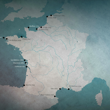 Thanks to admiral Antoine Thévenard, we have an inventory of all the illuminated lighthouses that existed in the late eighteenth century – there were one hundred and thirty, nearly all of them in Europe. The shores of the kingdoms of Denmark and Sweden had begun to be lit. But with fifty-four lighthouses by 1800, the English coasts were by far the best lit in the world. Despite the international renown of Cordouan,France's fifteen lighthouses paled in comparison. The small number of lights at the entrance to ports (Dunkirk, Calais, La Rochelle, Biarritz, Port-Vendres, Sète and Port de Bouc), the towers built by Vauban (Fréhel, Le Stiff, Oléron, les Baleines), other erected by the Rouen chamber of commerce (L'Ailly, La Hève, Barfleur), and the light at the Abbaye Saint-Mathieu could not compete with the density of lights along the coasts of England. In September 1792, the Navy was given responsibility for all lighthouses, daymarks and markers. Light dues were eliminated, as they had been in America. Coastal lighting became a free public good, which represented a fundamental break in how it had previously been funded and managed. In March 1806, an imperial decree transferred lighthouses from the Navy to the Ministry of the Interior, except for those at Stiff and at Saint-Mathieu. Engineers from Ponts et Chaussées took matters in hand, and launched a wide-ranging survey of the lighthouse network – structural conditions, oil supply, regularity of lighting, etc. The Ponts et Chaussées engineering corps had been created in 1716 and endowed with a school in 1747. Under the Revolution and Empire, the corps' scope of activities – which had hitherto been land-based – was extended to include maritime works as well.