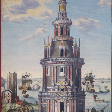 As soon as the engraving of Chastillon's drawing was published, it gave the Cordouan lighthouse a visual identity that would endure down through the centuries. In addition to copies of this image, the lighthouse as depicted by Chastillon became a key source of inspiration for other images, with the risk that a distorted idea of the monument would become firmly fixed in the collective imagination. For example, Chastillon's drawing is the only image in which two statues, identified as Mars and Victory, appear on the lighthouse's pediment. None of the anonymous descriptions of 1630 and 1645 mention them, and in 1648, the Dutch draftsman Herman van der Hem, who was living in Bordeaux at the time, made a sketch of the lighthouse in which the statues do not appear. Even more troubling, the young Leon Godefroy visited Cordouan in August 1638. The account of his voyage offers a description of both the façade and the inside of the lighthouse – although he refers to busts of Henri III and Henri IV placed in niches on the ground floor, he does not mention any statue. With an eye to a possible publication, he reviewed his account in 1645, adding several geographical details. In between, the well-known image by Chastillon was published in his Topographie française in 1641. In the passage devoted to the décor of the inside of the lighthouse, Godefroy adds: "and two other statues". He modified his text based more on the image by Chastillon than on his own account. As to the statues, the only possibility is that they were destroyed in the storm of 1617. Although it is likely that Chastillon embellished his account with an eye to conveying the lighthouse's symbolic power, the presence of the statues was part and parcel of the image of Cordouan starting in the seventeenth century. The Cordouan lighthouse was both firmly rooted in a collective imagination defined by Chastillon's drawing, and a fanciful notion based on various interpretations.