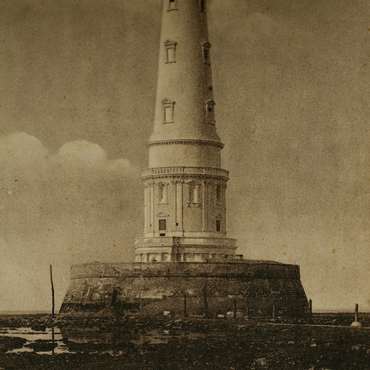 There must be more than a thousand postcards of Cordouan, and from every era, although many are quite similar. The leading collectors of antique postcards (prior to 1939) have more than three hundred different views of Cordouan, some dating from the 1890s. By and large, the photographers chose to capture the outside of the monument, taken from the peyrat or the rocks. Some of the most interesting ones – and the rarest – show the changing of the guard from the buoy tender, architectural details and the interior of the tower. Views of the lighthouse’s ground floor, first floor and the bust of Louis de Foix are particularly sought after. There don’t appear to be postcards of the altar or the lens. Postcards are commercial objects sent to often-distant recipients, but they can also become something fanciful and impressionistic, when the publisher adds a raging sea, lowering clouds or sea gulls circling over the waters around the lighthouse. In the 1920s, the lighthouse keepers sometimes added the oval stamp of the lighthouse to the card, indicating the date of the visit, which increased the value of the object. Cordouan is often associated with Royan, the only port from which, at one time, one could visit the monument. The lighthouse also appears among Soulac-sur-Mer postcards, where it is visible from the coastline. However, Le Verdon and la Pointe de Grave were not views taken up by postcard publishers. Before the First World War, a printer from Bordeaux even issued a dark brown aerial view of Cordouan. This type of view is considered quite rare. In the 1950s and 1960s, the "semi-modern"postcard abandoned interior images of the lighthouse and focused on colour-tinted views taken from the air. Special effects were added to certain images, such as beams of lights emanating from the lens. Each summer for the last twenty years, collectors have noted a dozen new lighthouse images. There are also a number of large-scale artistic postcards.