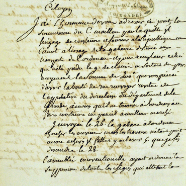 Lettre de Teulère décrivant aux administrateurs de la Gironde l'installation des nouvelles lampes, 6 juillet 1793